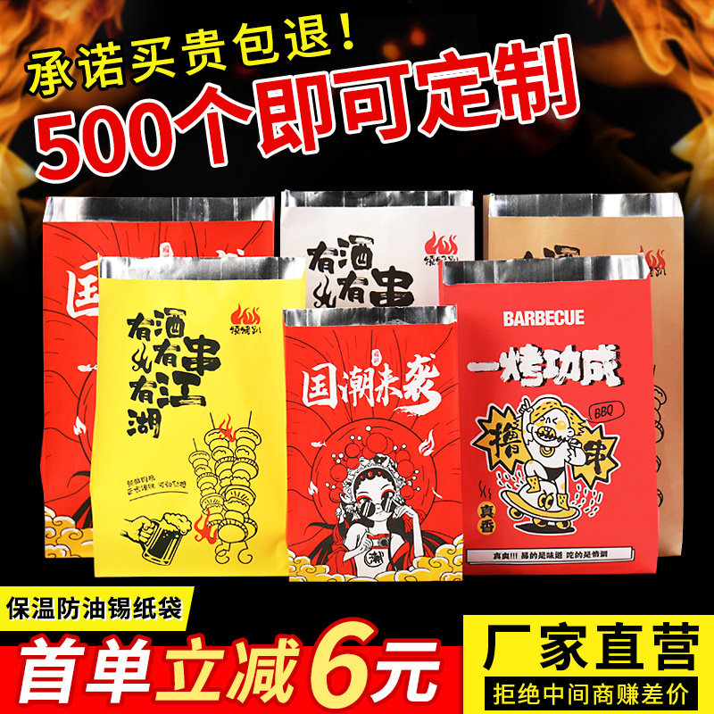 Grill packing bag aluminum foil insulation tin foil bag disposable takeaway packaging bag oil-proof grilled skewer fried skewers cowhide bag