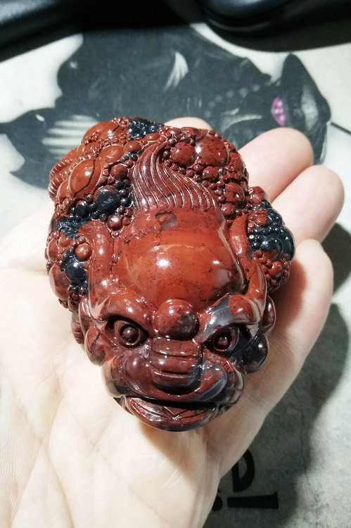Guilin Chicken blood Yusha Ridge Mouth Great Red Robe Pendulum with Carved Hand Play Pendant Boutique Three-foot Ruyi Golden Toad