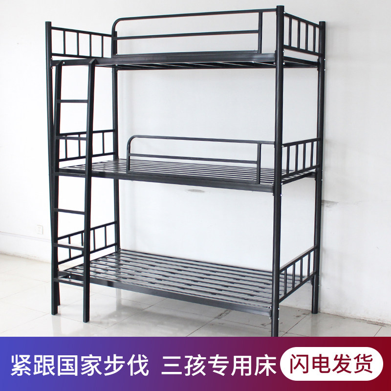 Three-tire bed wrought iron three-layer bed upper and lower bunk iron bed staff dormitory bed adult student iron shelf double high and low bed