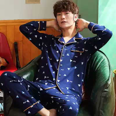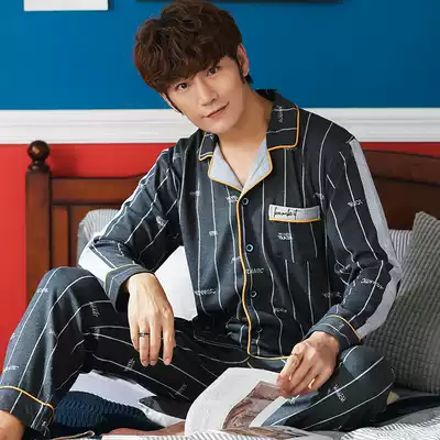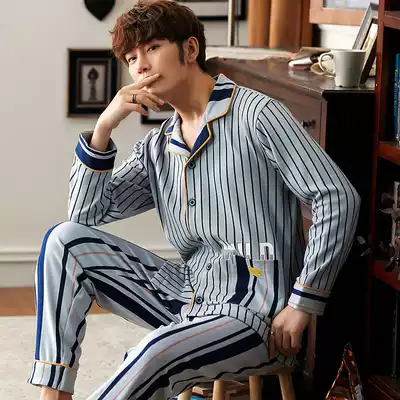 Pajamas men's long-sleeved cotton spring and autumn large size loose cardigan cotton men's summer thin home service suit