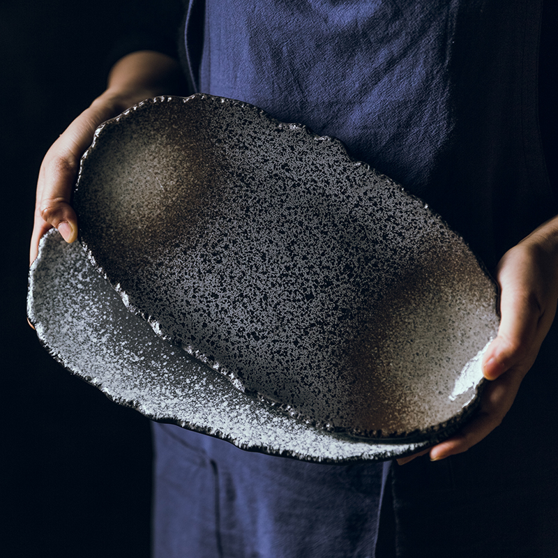 Oval Ceramic Plate Large Capacity Fish Pan Rice Dish Pan Water Dumplings Household Large Size Flat Pan Irregular Cutlery