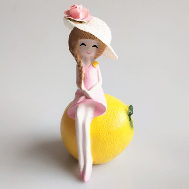 Resin Little Fresh Fruit Girl Grass Hat Teenage Girl Queen Goddess Raw Daily Necessities Cake Party Decorative Swing