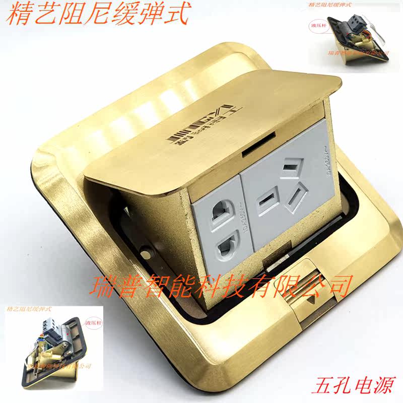 Refined ground socket five-hole all-copper panel waterproof damping slow open slow-bounce household power refined electrical site plug