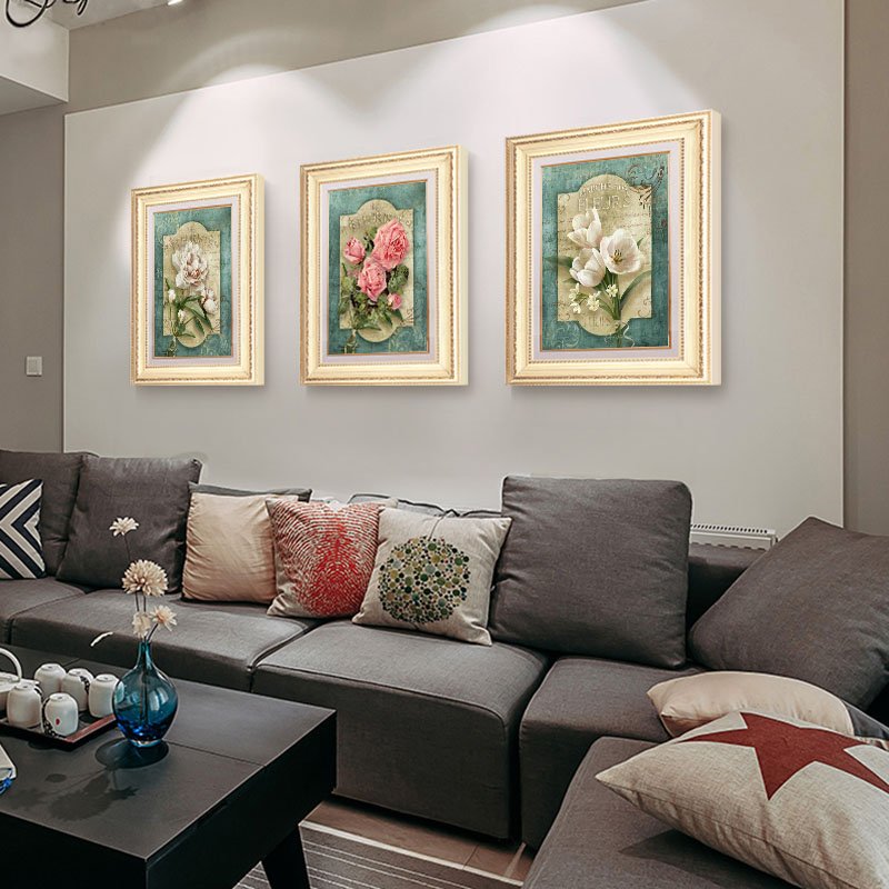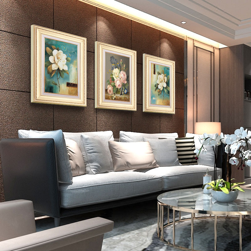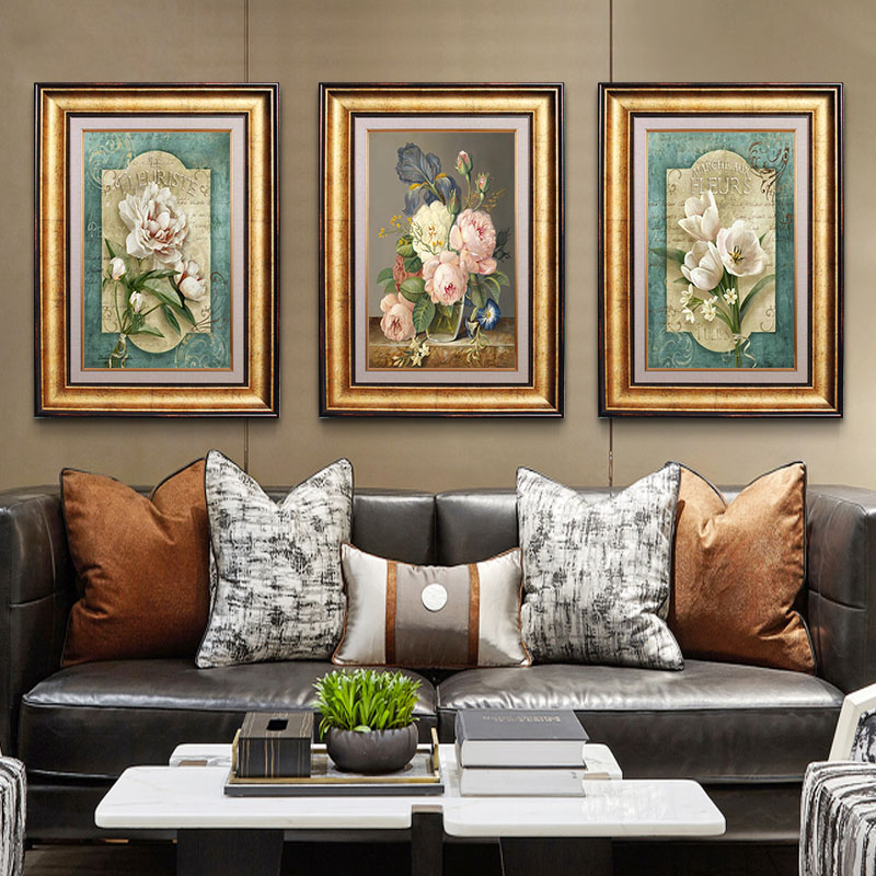 Mural living room hanging painting sofa background wall hanging painting American luxury decorative painting European oil painting triptych dining room light luxury
