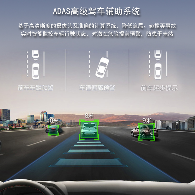 Positioning Mobile Detection Cycle Video Fixed Speed Measurement Parking Monitoring Night Vision Supplementary Light Changing Lane Assistance Front Car Start Reminder Front Car Wheelbase Detection Track Offset Forecar Collision Early Warning