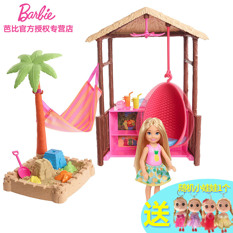 Barbie doll set Barbie little Kylie Mermaid combined on beach girl's birthday as a family wine toy