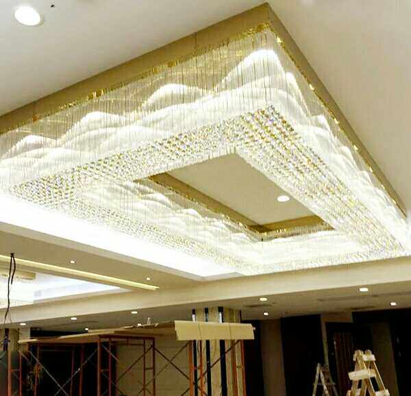Large hotel lobby engineering crystal lamp rectangular villa sales banquet hall jewelry shop ceiling lamp customized