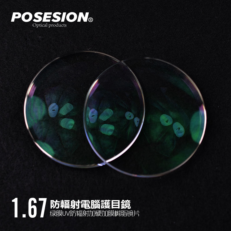 Custom product POSESION1 67 Aspherical green film anti-radiation plus hard thin and thin resin lens 2 pieces