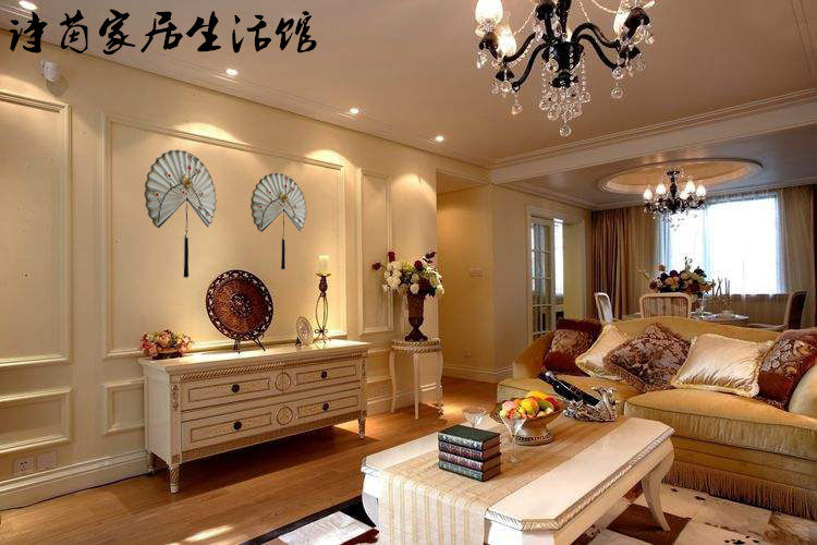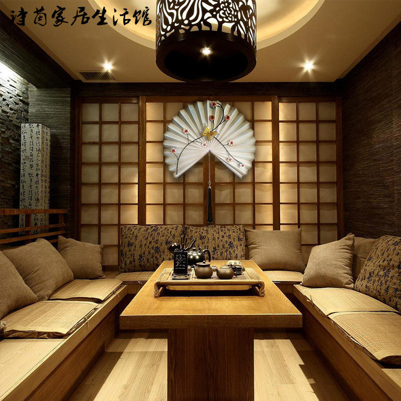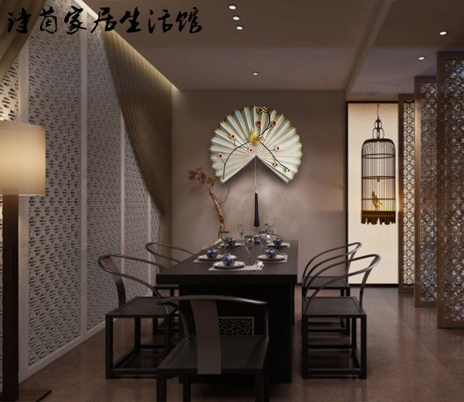 New Chinese fan-shaped wrought iron wall hanging living room entrance TV background wall decoration Model room soft wall decoration