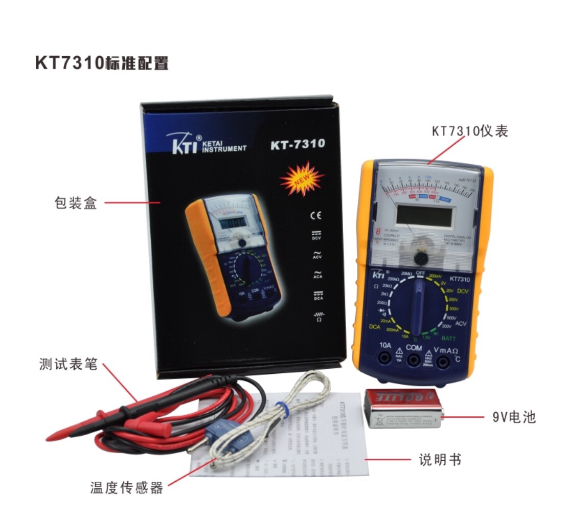 Ketai KT7310 Pointer Digital Display Dual Display Universal Meter Dynamic Watch Pointer Static Digital Display Temperature Test