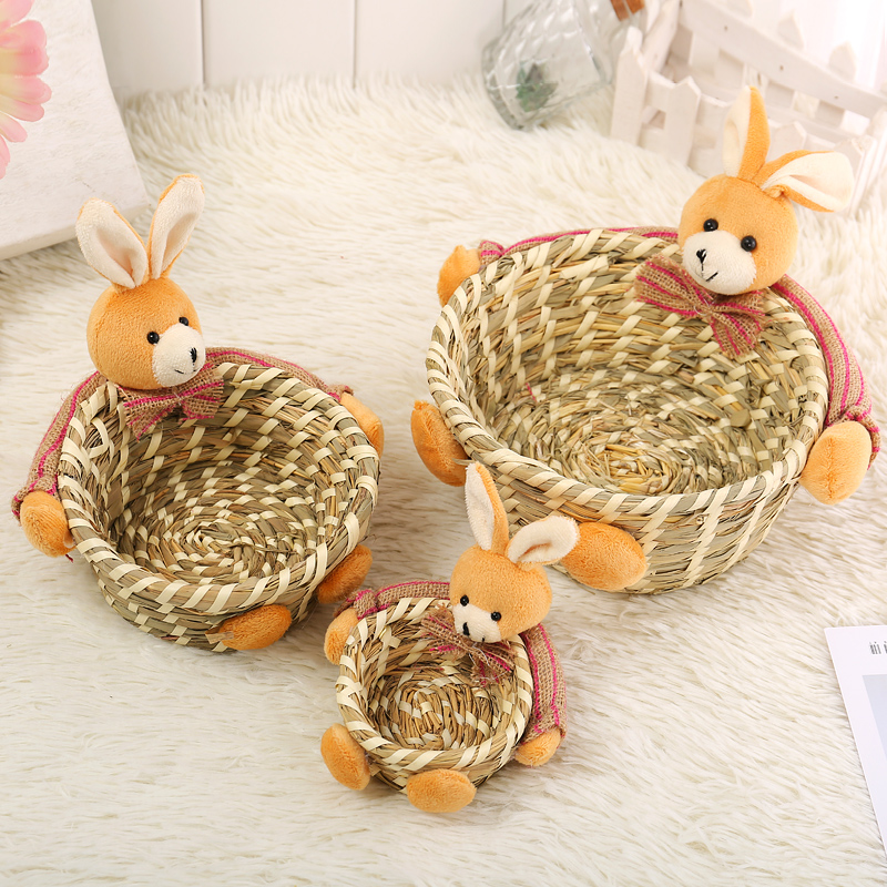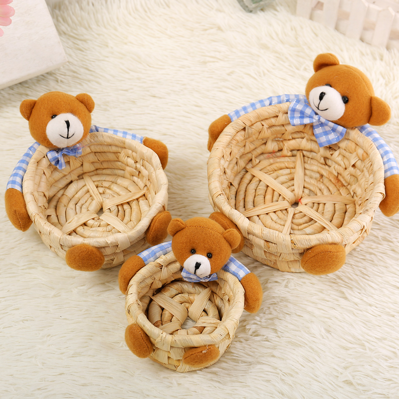 Bear storage basket snack key cosmetic storage box pastoral rabbit sundries box rattan fabric storage box