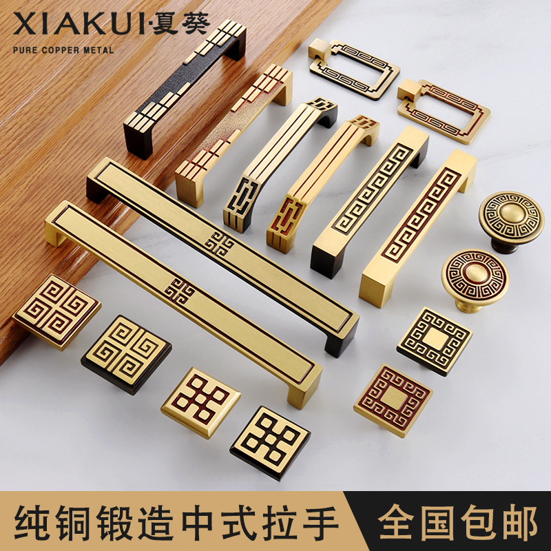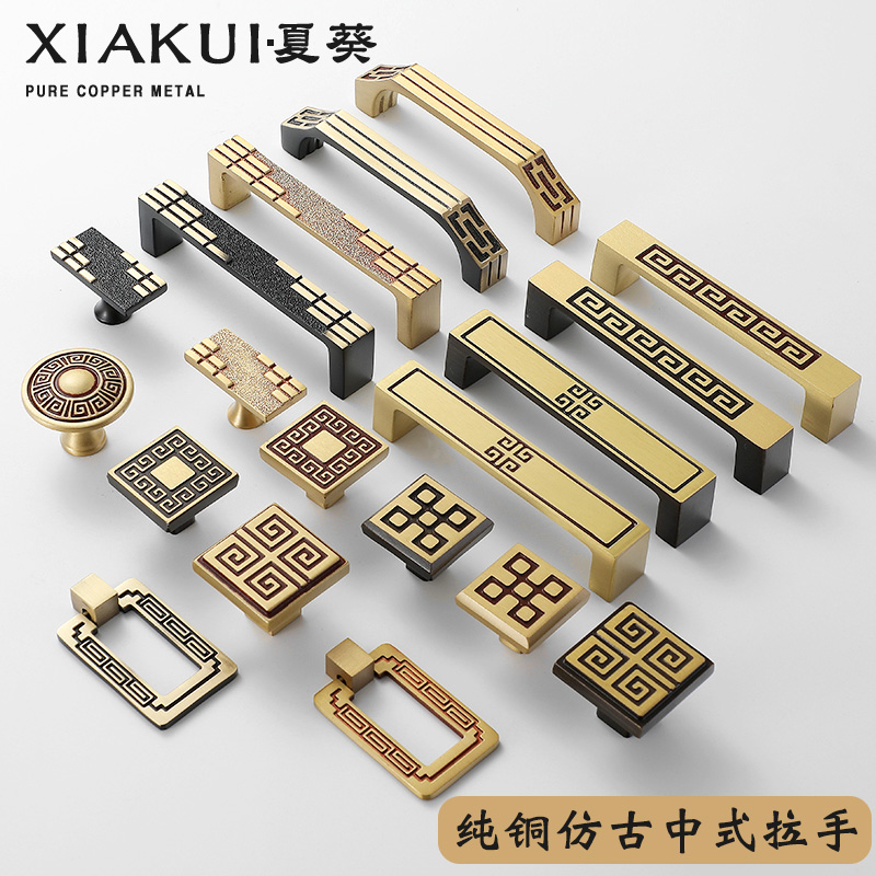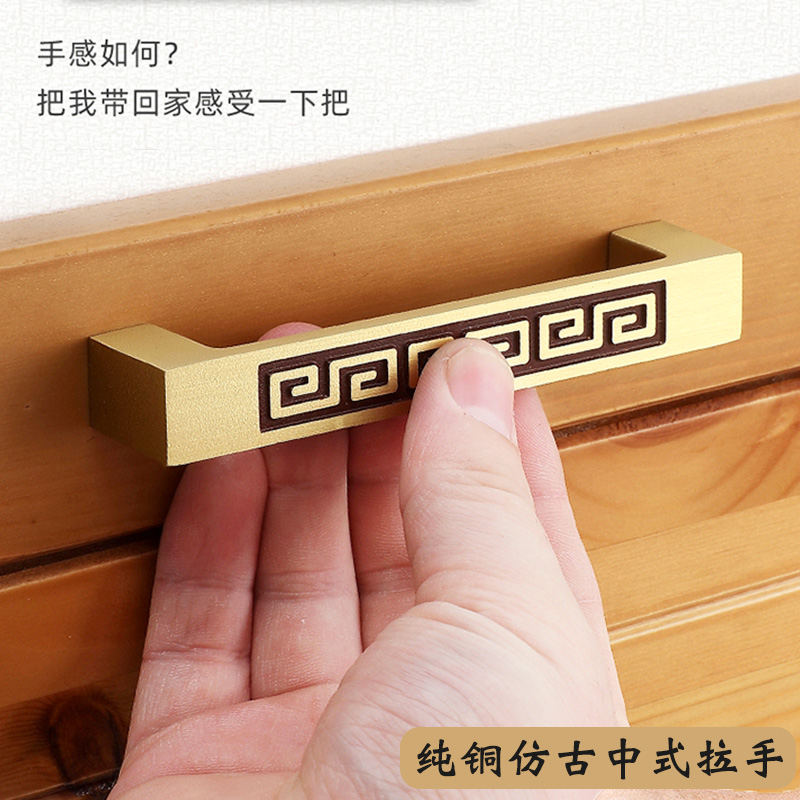 Chinese antique all copper handle Pure copper single hole drawer whole cabinet door wardrobe sub-neoclassical wardrobe brass door handle