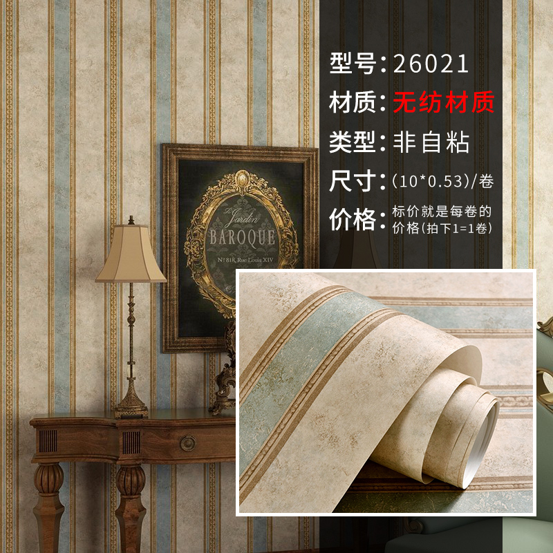 American country retro nostalgia light luxury bedroom wallpaper living room study Chinese vertical striped TV background wallpaper
