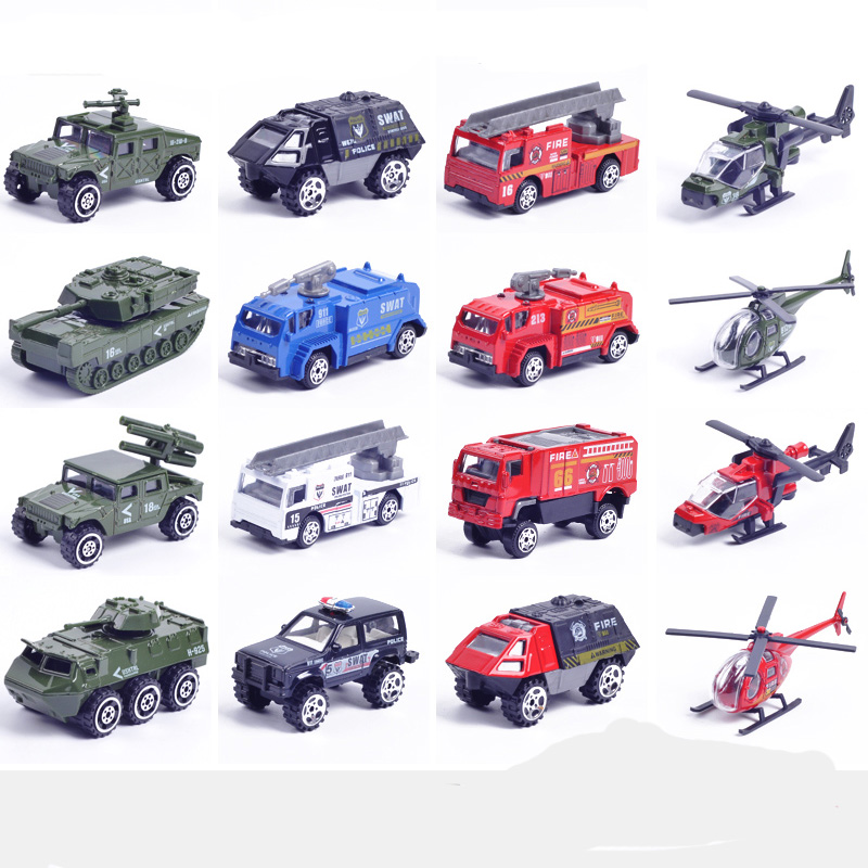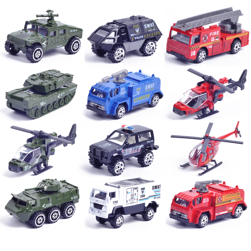 Military alloy toy car model suit children mini police car fire truck taxi ride boy gift