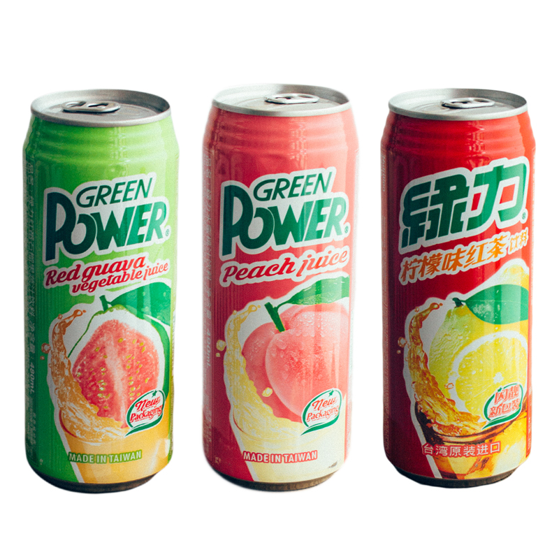 Taiwan Beverage Green Power Juice Guava Peach Mango Pineapple 6 Cans Combination
