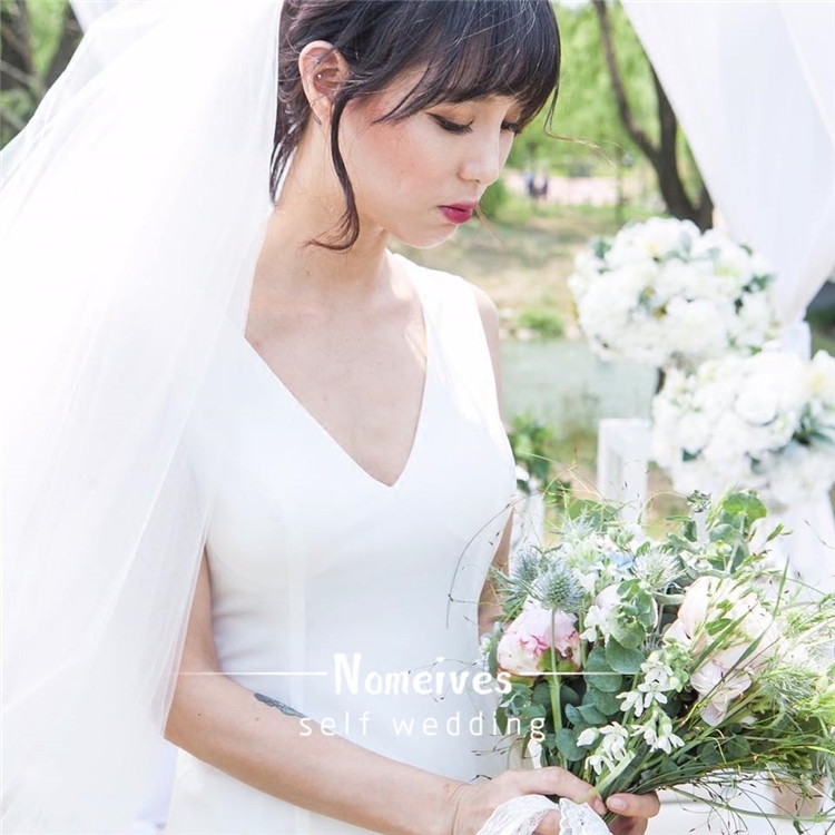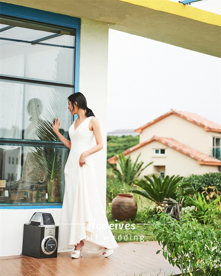 (Morning Xi) Nomeives summer new lean V collar Brief about light wedding dress Sexy open back small trailing off the door