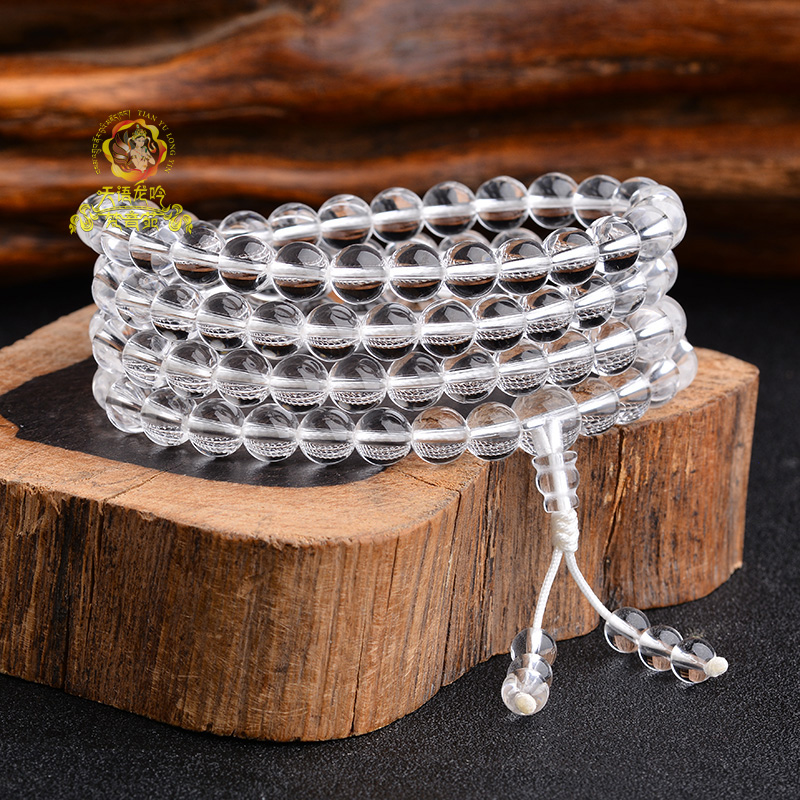 Brazil's natural white crystal bracelet 108 simple ice pure transparent male and female support national inspection 8mm