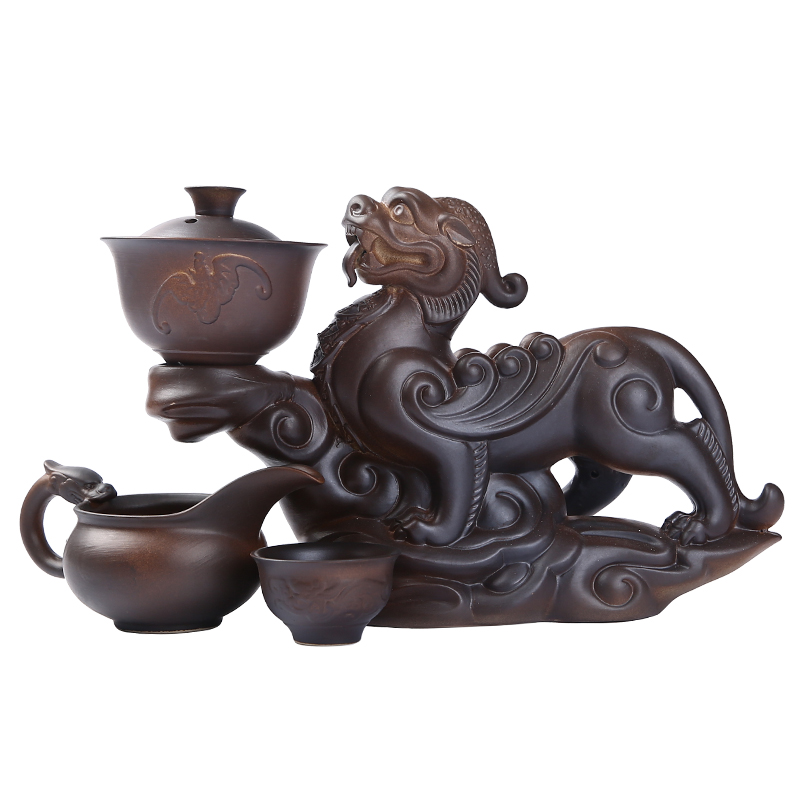 Gongfu tea tea cup suit home ceramic teapot creative stone grinding tea maker full semiautomatic sloth tea set