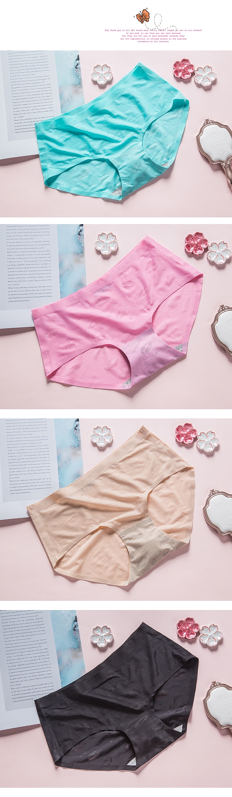 One-piece, no-dent underpants female ice wire sexy ultra-thin translucent red lip lady triangle pants breathable pure cotton crotch
