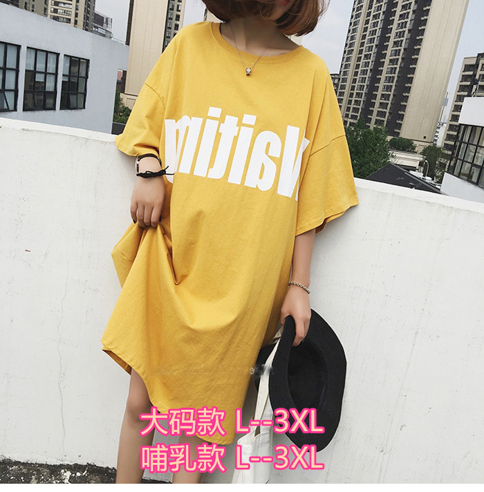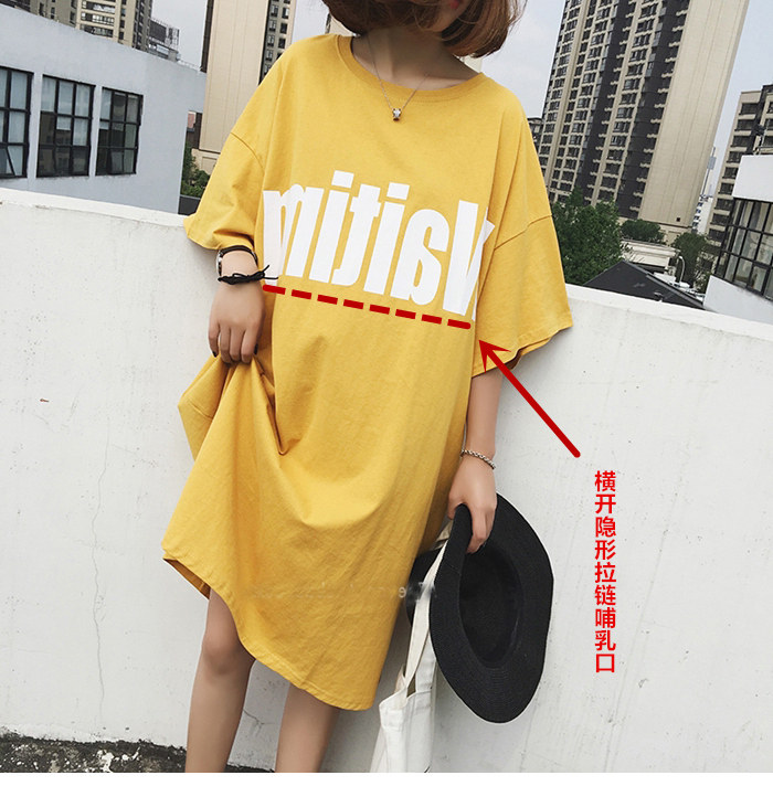 Large size pregnant woman T-shirt 2021 summer dress new pregnancy pure cotton short sleeve blouse letter printed foreign dress