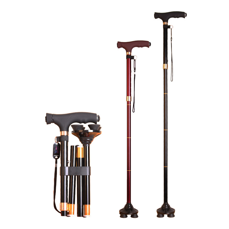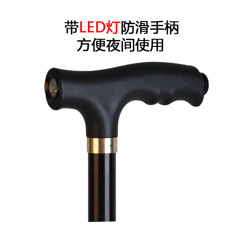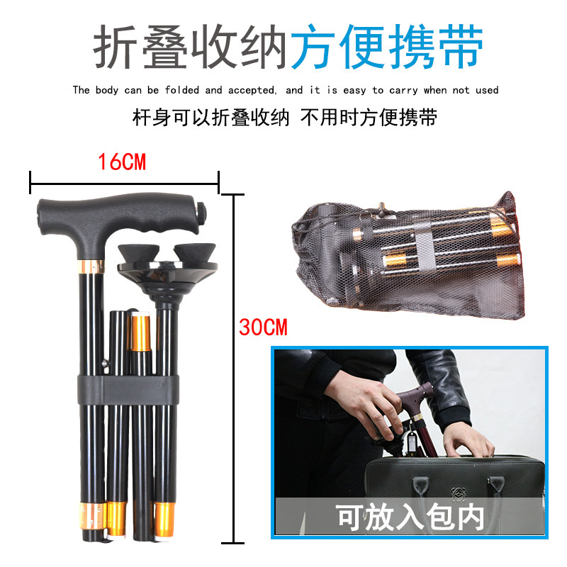 Old man's walking stick with walking stick Climbing Cane Four-foot Crutches Versatile folding and folding with lamp non-slip steel nail telescopic light cy