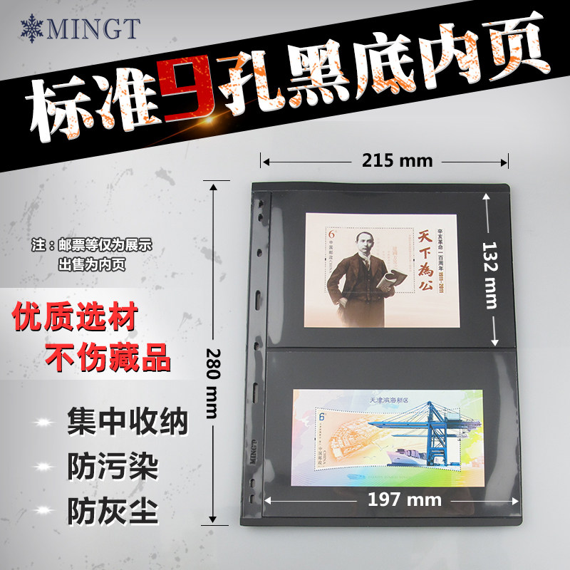 Mingtai standard 9 holes (black bottom double-sided two rows) loose-leaf stamp album banknote album inner page