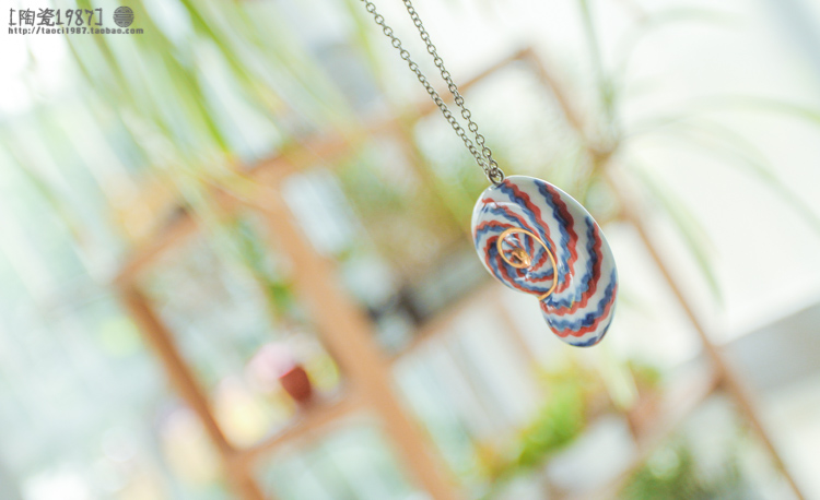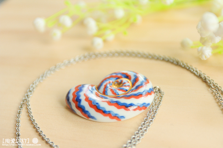 Ceramic item pendant ornament Pop Jewelry Ceramic Red Blue Sea Snail Pendant Little Fresh Necklace Send Girlfriend