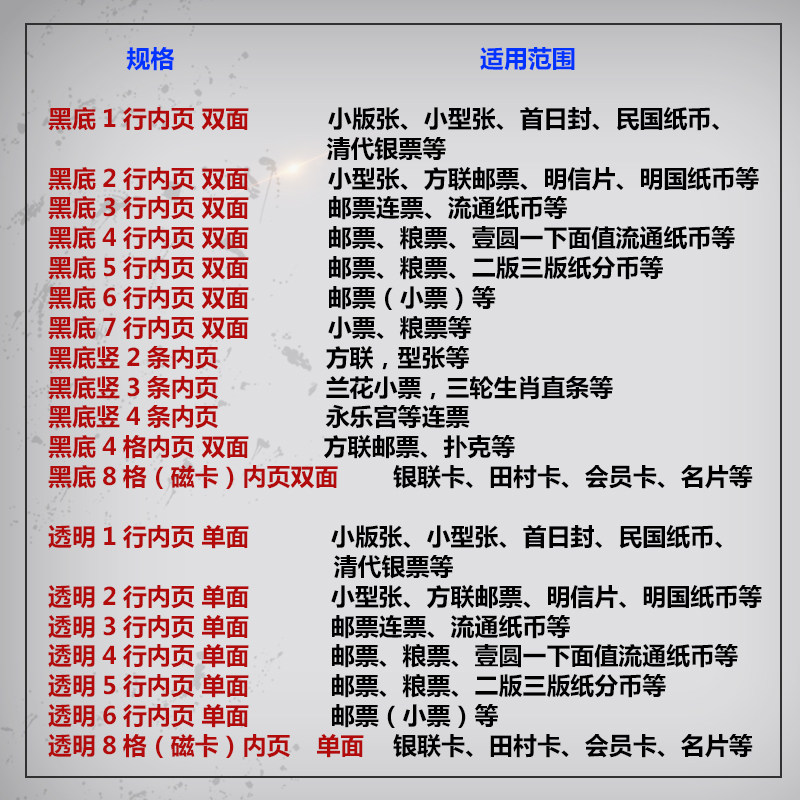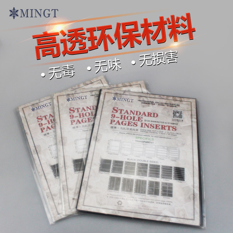 Mingtai standard 9 holes (black bottom double-sided five elements) loose-leaf stamp album banknote album inner page