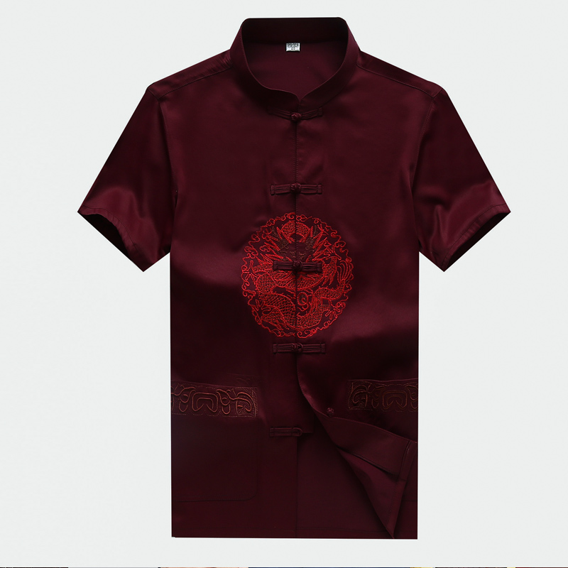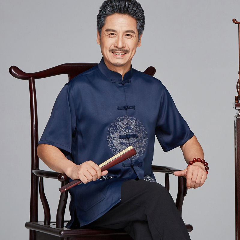 Tang suit male middle-aged and elderly Han suit Chinese style dad suit Summer silk short-sleeved old man birthday suit Grandpa suit