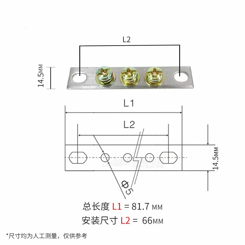 Pure copper piece 3 holes ground row with zero row 1 4 * 14 5 power distribution cabinet ground row Three holes zero ground row without slip