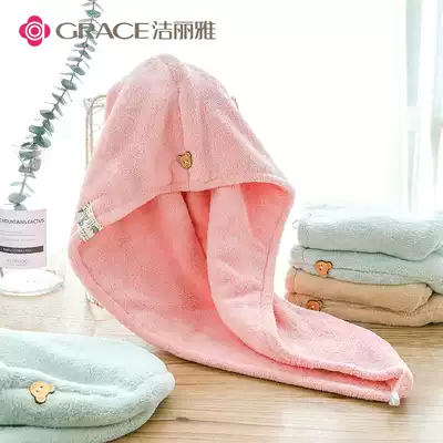 Jielia dry hair cap strong water absorption quick-drying wipe head scarf adult double thick shower cap dry hair towel