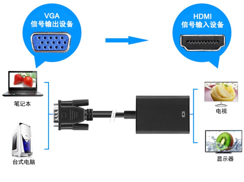 vga to hdmi dvi converter with audio power TV projector line HD converter
