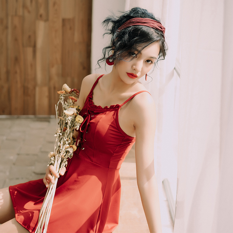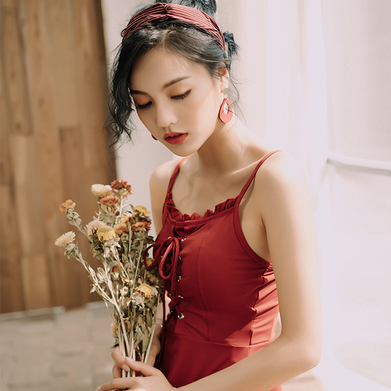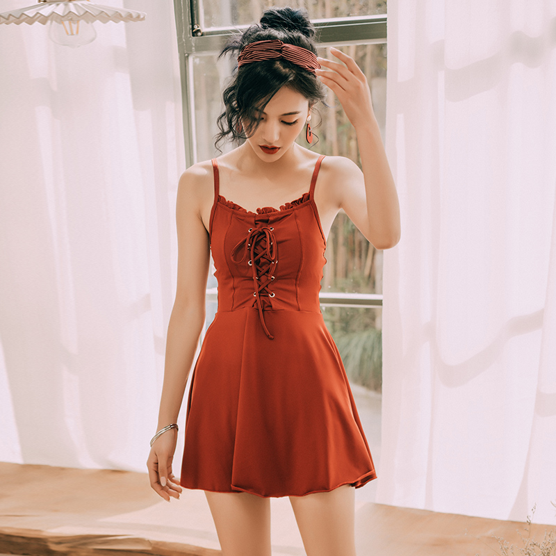 The Little Peach Swimsuit Woman 2021 new conservative Chater Slim Holiday Small Breasted to Skirt With a Flat Corner Swimsuit