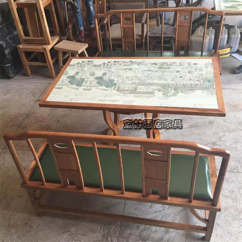 New Chinese Dining Hall Hotel Green Flower porcelain table Gui full of longfamily with personality themed furniture and chairs combined set to do