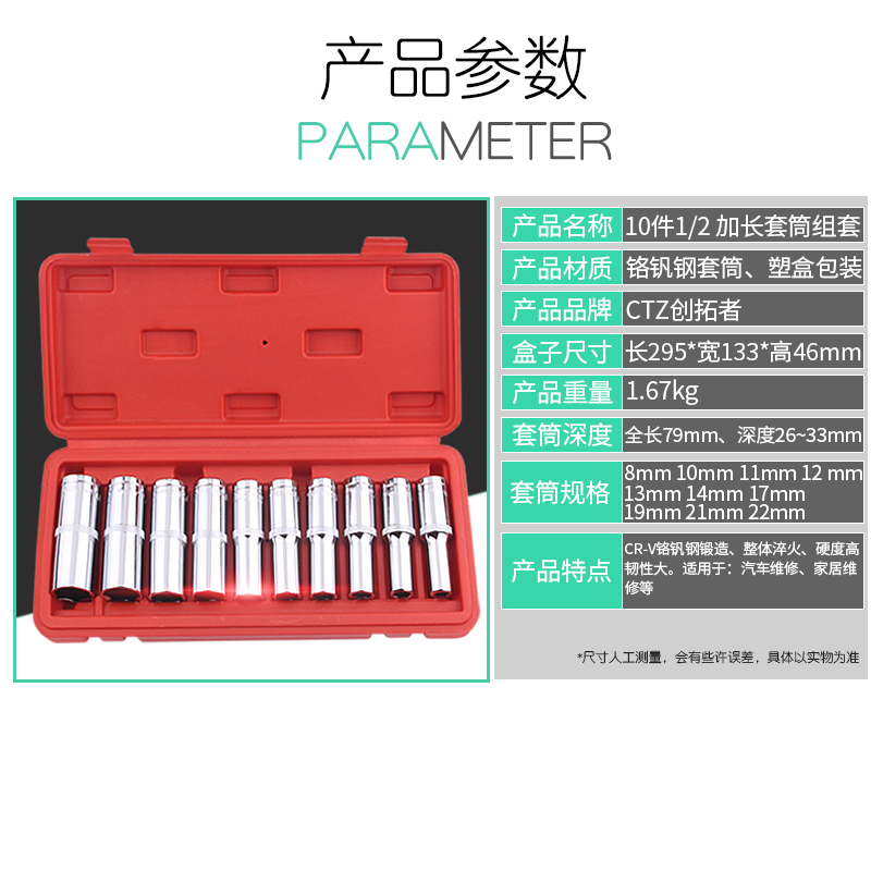 1 2 Lengthened Sleeve Mirror 10-piece Set Socket Wrench Tool Set Miniature Set Sleeve