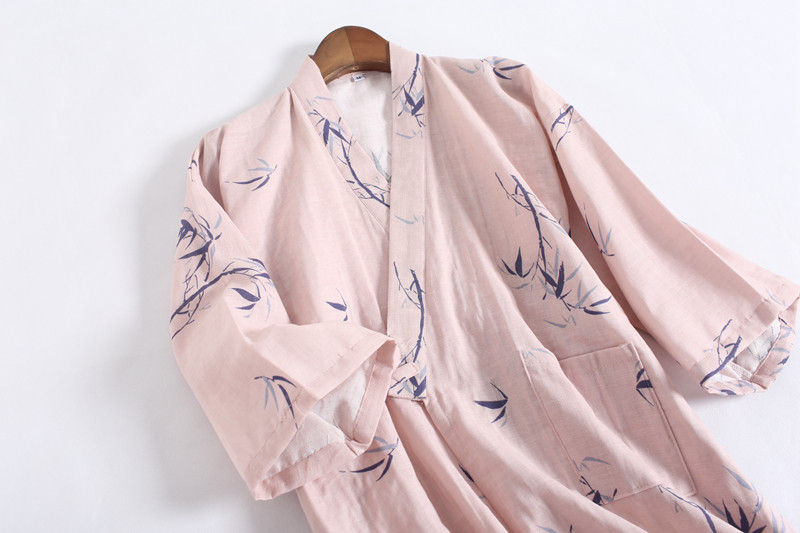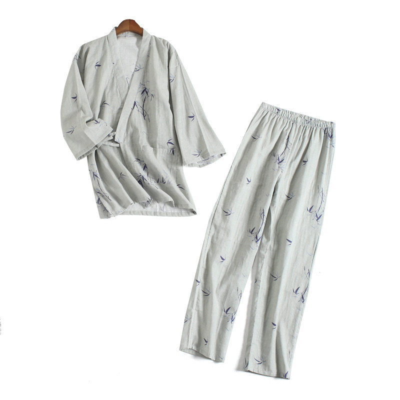 Couple cotton pajamas spring and autumn double layer gauze short-sleeved trousers Japanese ink bamboo kimono home service suit foreign trade summer