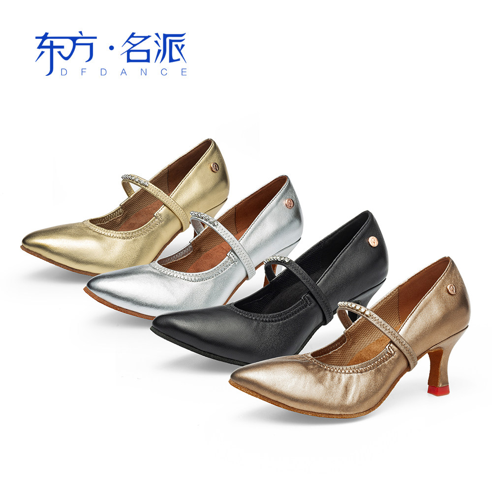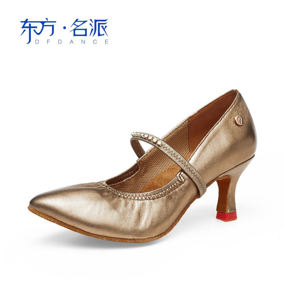 2022 New Oriental Famous Pai Sheepskin Professional Modern Dance Shoes Women's Gold Soft Sole Middle Heel Square Dance Shoes