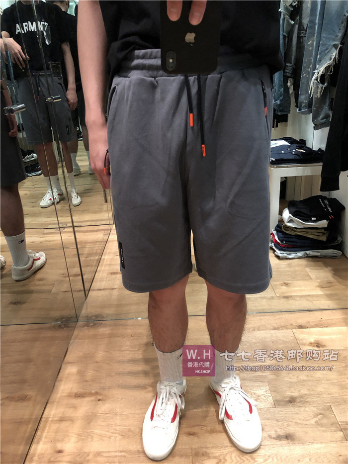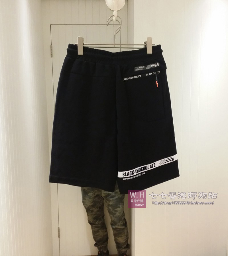 Hong Kong Chao Shop Chocolate 21 summer male letter print zip pocket drawing rope shorts 3364