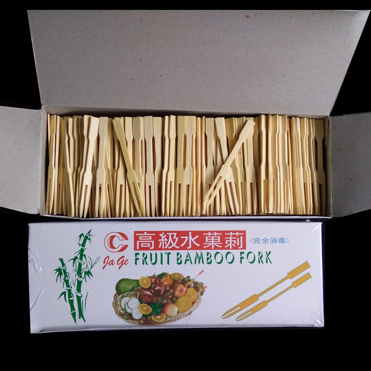 Natural Bamboo Fruit Sign Disposable Fruit Fork Creative Bamboo Two Teeth Fruit Inserts Cake Home Refreshment Flower Sign