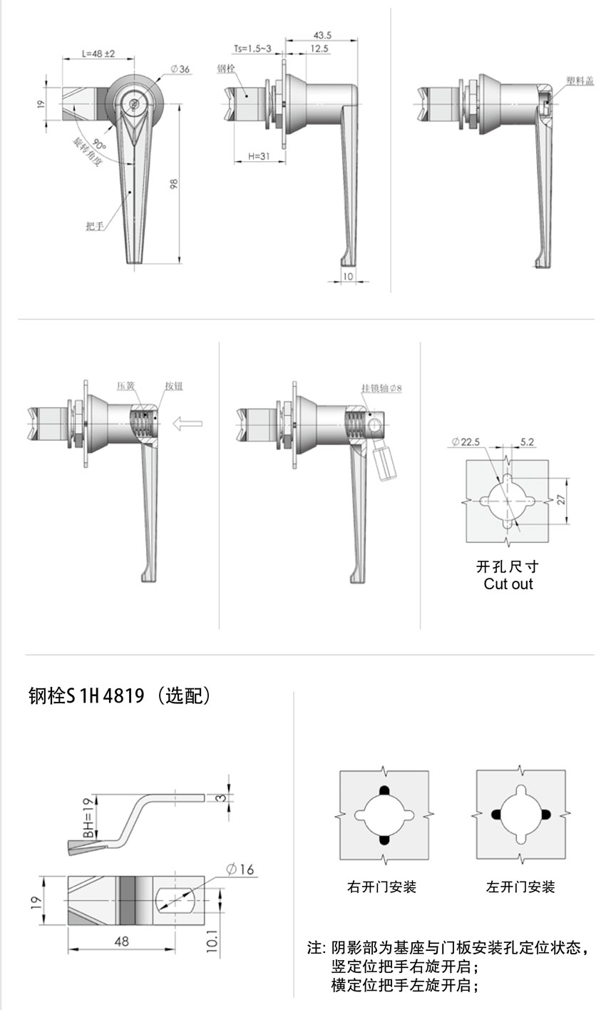 Shengjiu cabinet lock handle lock distribution cabinet lock MS302-1 MS302-2 MS301-1 SJ quality assurance