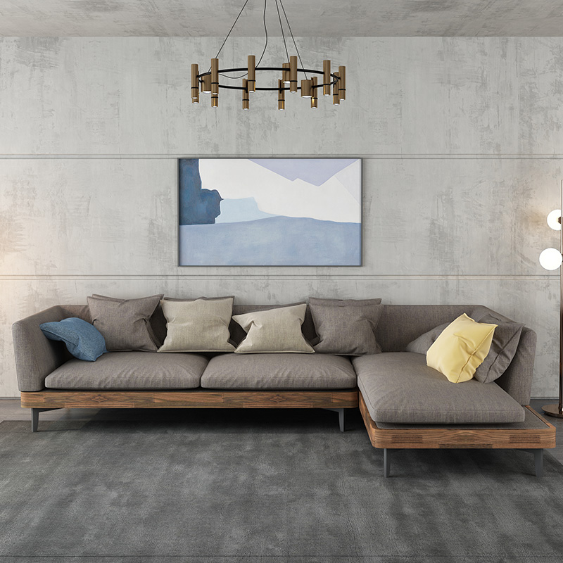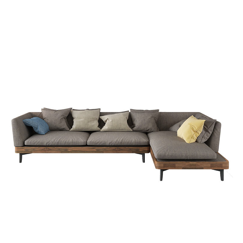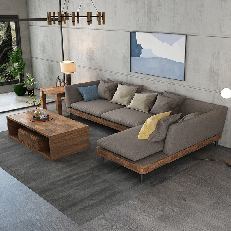 Yichi Noah Furniture L-shaped Concubine Corner Sofa Combination Down Fabric Sofa Black Walnut 3 Solid Wood Sofa