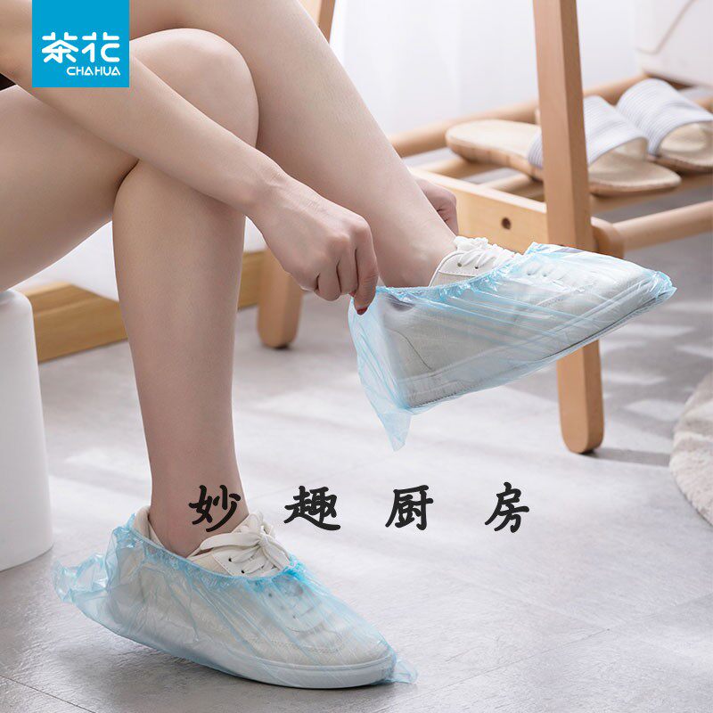 Tea flower 12 Double fit disposable shoe cover for rainy day Isolation waterproof and dust-proof domestic indoor dust-proof student foot sleeve 4205