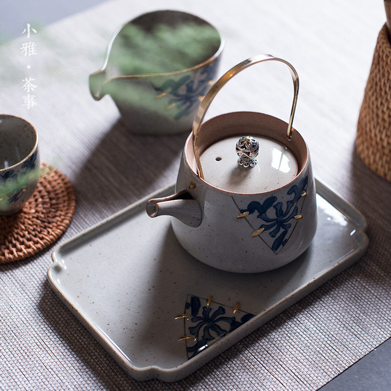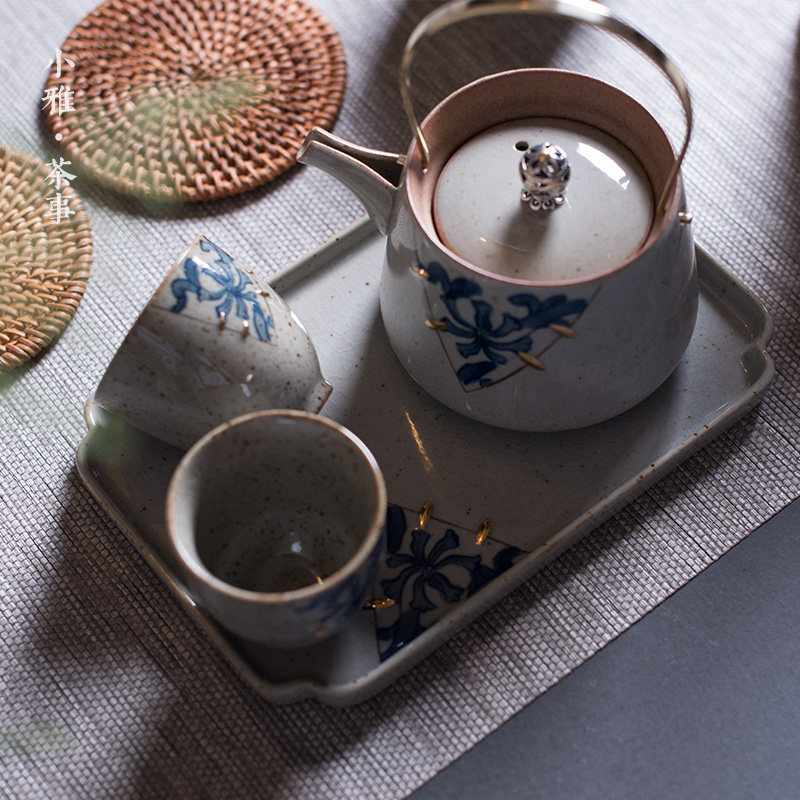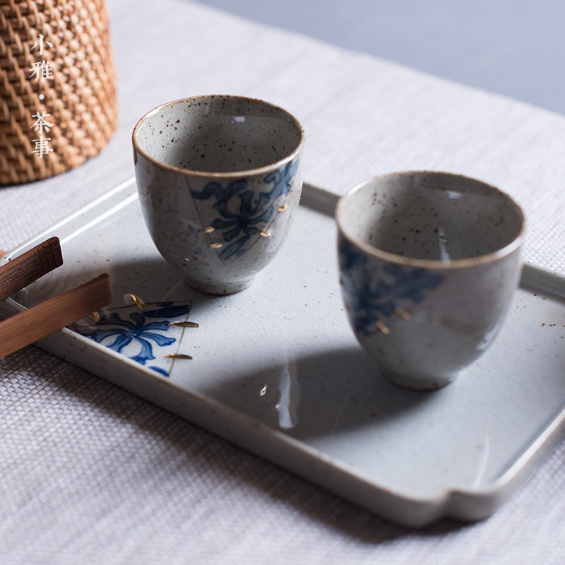Xiaoya imitation ancient gold Flowers Dry Bubble Pan Retro small tea tray Ceramic utilituria Tea track Zero matching tea Undertaking tea cup Tootto