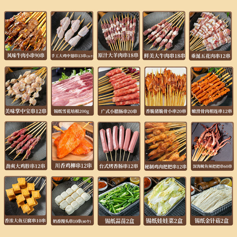Shanghai Beibeilang barbecue ingredients outdoor skewers ingredients semi-finished skewers park delivery 5 skewers of barbecue gluten