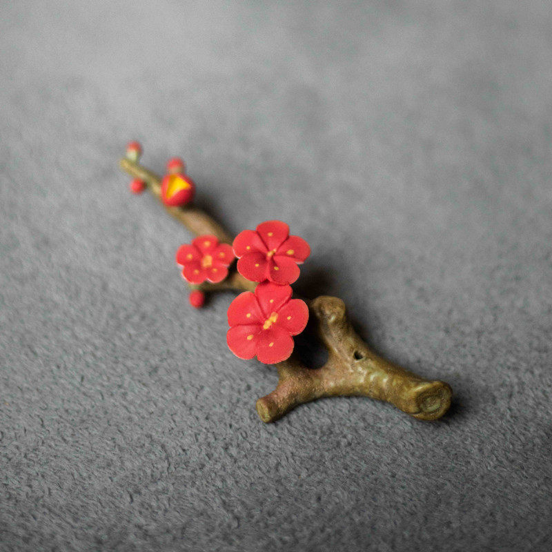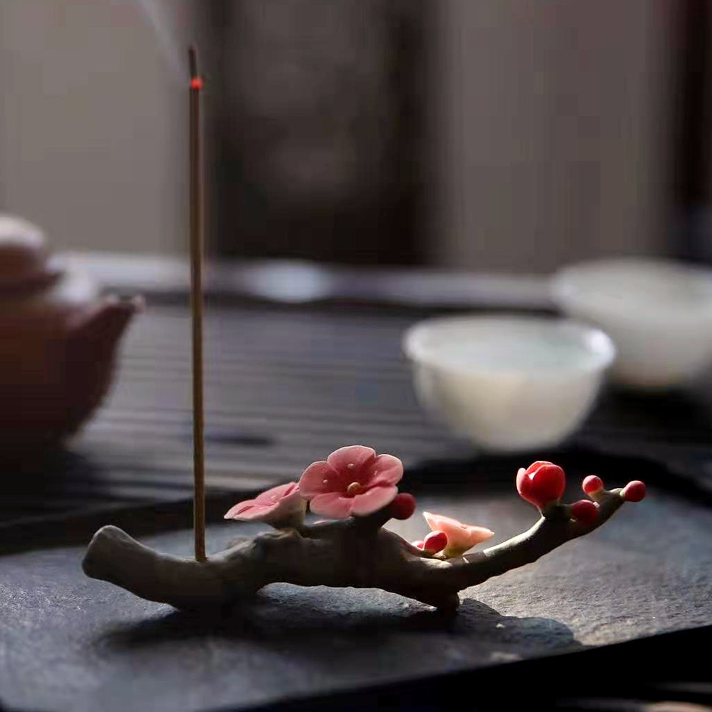 Send Sandalwood Plum Blossom Fragrance Insert Handmade Ceramic Hand Pinch Ceramic Flower Tea Ceremony Lying Incense Plate Tea Pet Ornament Line Incense Incense Holder