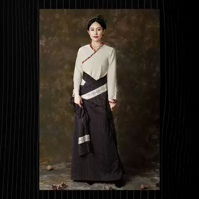 Clearance 6 fold black and white striped Tibetan robe Tibetan clothing female Tibetan clothing new Lhasa Zang robe