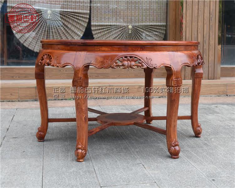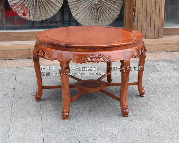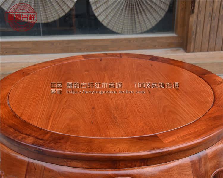 Burmese rosewood leisure table, big fruit red sandalwood round table 1 2 meters single board, mahogany plum blossom table, mahogany dining table
