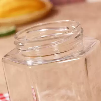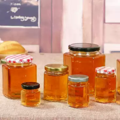 Six-sided glass bottle empty bottle bird's nest honey yellow peach big mouth a catty creative large capacity sealed can with lid