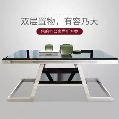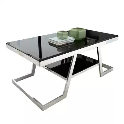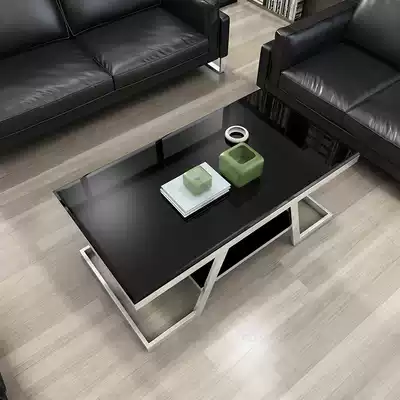 Office coffee table Office sand tea table combination Modern minimalist reception area living room black glass Stainless steel
