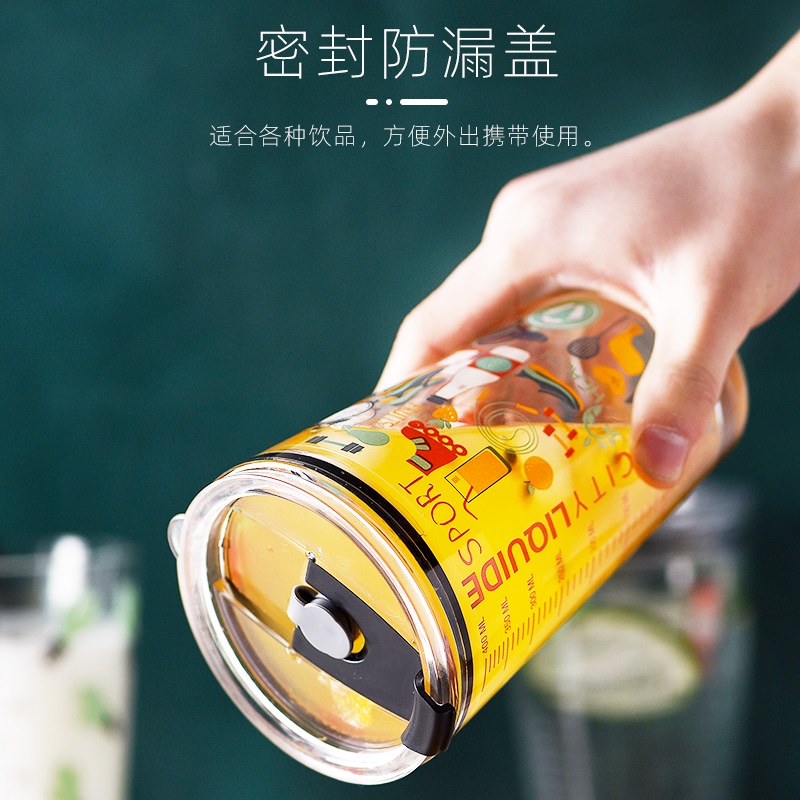 Glass ins wind home milk tea net red cup scale milk juice girl cute straw cup with lid